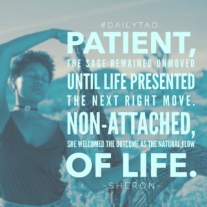 LIVING THE TAO: Today, Be meditative in motion. Select one virtue—compassion, patience, non-attached—and embody it in all interactions. Be a modern sage.