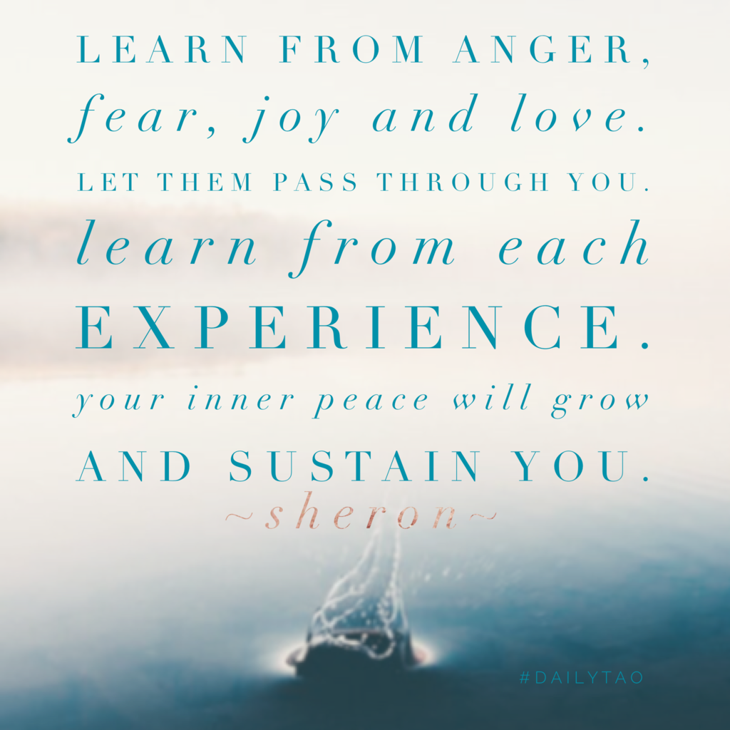 Learn from anger, fear, joy and love. Rather than react, let them pass through you. Allow the cleansing. Learn from each experience. Your inner peace will grow and sustain you.