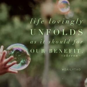 LIVING THE TAO: Today when you feel anxious about an outcome, stop. Inhale a breath of gratitude for what is, exhale to release the worry, then say, “life lovingly unfolds as it should for our benefit.”