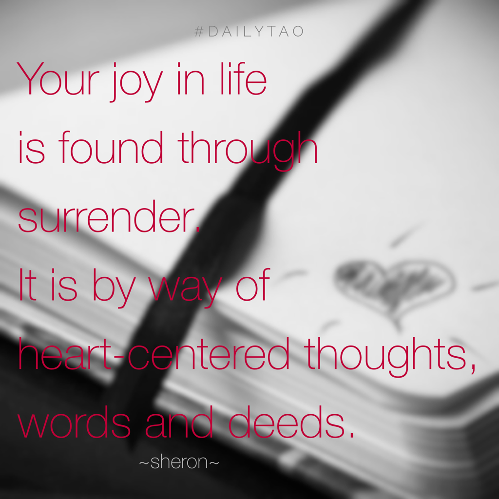 Nevertheless, your joy in life is found through surrender. It is by way of heart-centered thoughts, words and deeds that one aligns with life’s flow and experiences the joy of living.