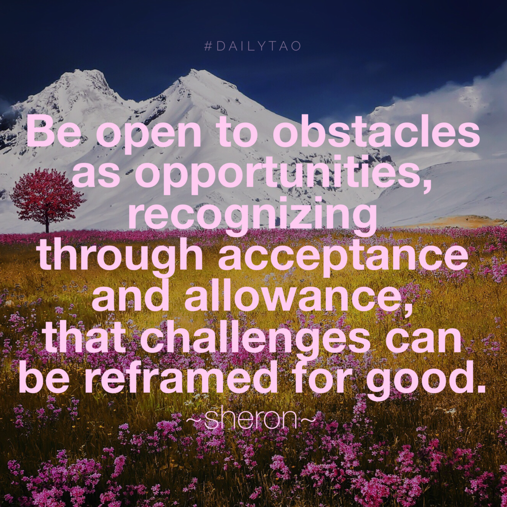 Finally, can you be open to obstacles as opportunities, recognizing through acceptance and allowance, that challenges can be reframed for good?