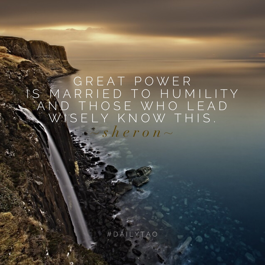 LIVING THE TAO: Today, consider a situation where you are in the dominant role. Identify how you can put the needs of someone else before your own as you work together on accomplishing a task. Acting on your awareness in this way will help you grow in greatness.
