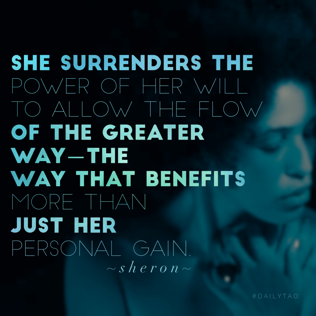 She surrenders the power of her will to allow the flow of the greater Way—the way that benefits more than just her personal gain.