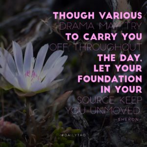 LIVING THE TAO: Today, as you are in the midst of drama, mentally pull back, take a cleansing deep breath in, and exhale reminding yourself of the truth that matters. What matters is what is lasting. You are an extension of your powerful Source. That is what matters, not the drama.