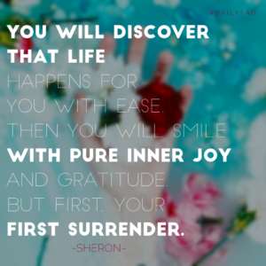 It all begins with one surrender. It continues with the next, then the next, then the next. Over time, you will discover that life happens for you with ease. Then you will smile with pure inner joy and gratitude.