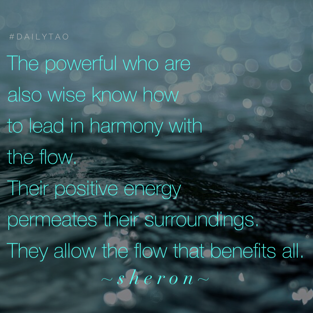 The powerful who are also wise know how to lead in harmony with the flow. They encourage others to connect to their true nature and create peace because their life is a model. They model self-control and accomplishing without dominance. Because they know who they are and are secure, their presence is radiant and their positive energy permeates their surroundings. They allow the flow that benefits all.
