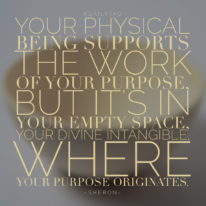Your physical being supports the work of your purpose, but it’s in your empty space, your Divine Intangible, where your purpose originates.