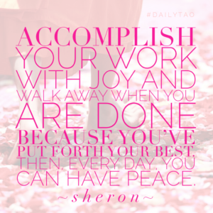 Accomplish your work with joy and walk away when you are done because you’ve put forth your best. Then, every day, you can have peace.