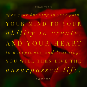 When you open your knowing to your path, your mind to your ability to create, and your heart to acceptance and learning, you will then live the unsurpassed life.